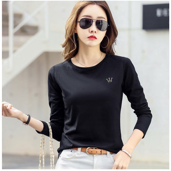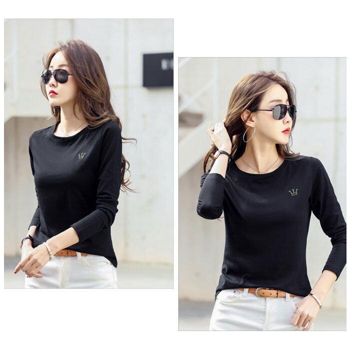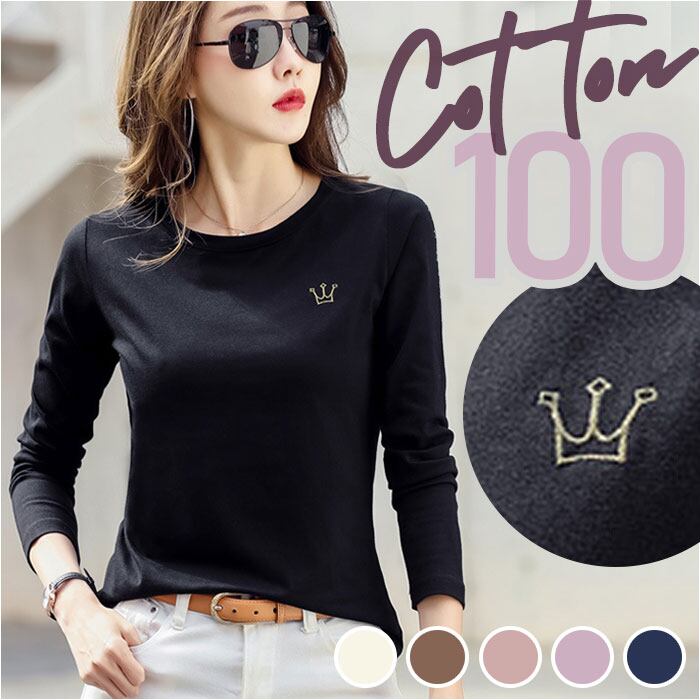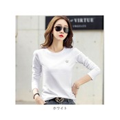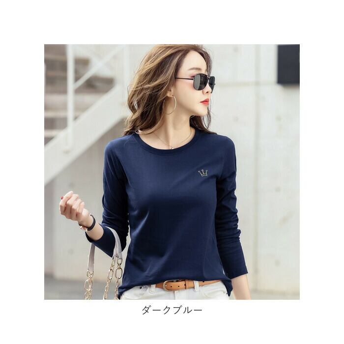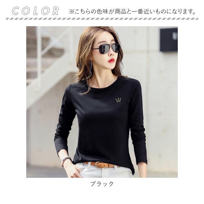 Tシャツ レディース クルーネック 刺繍 長袖 oudgzr304