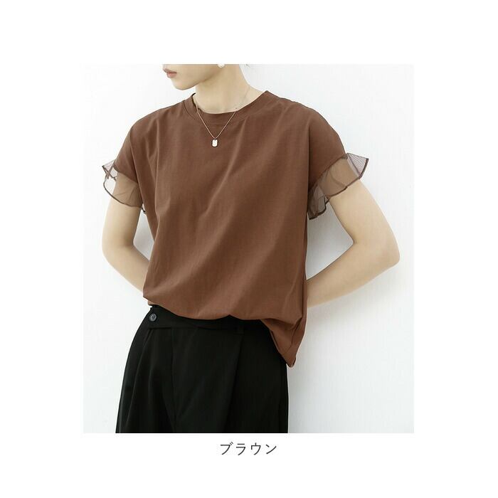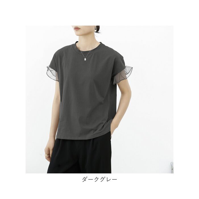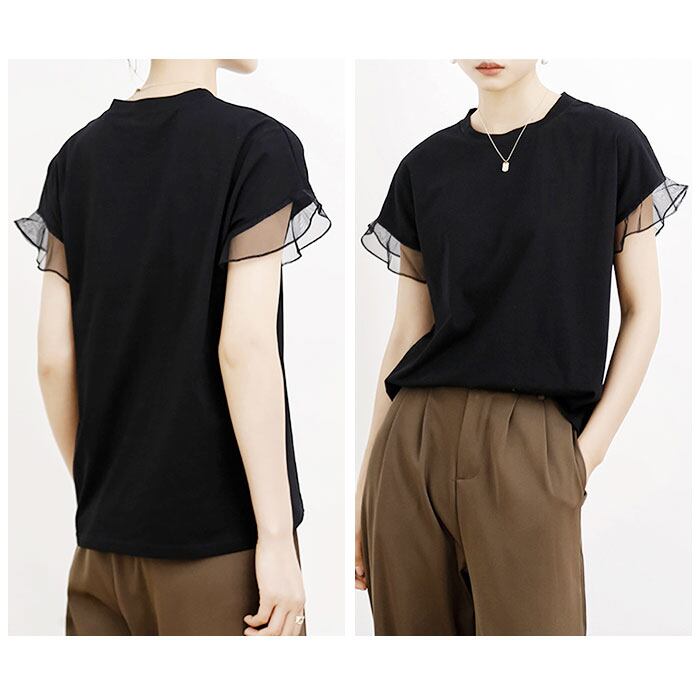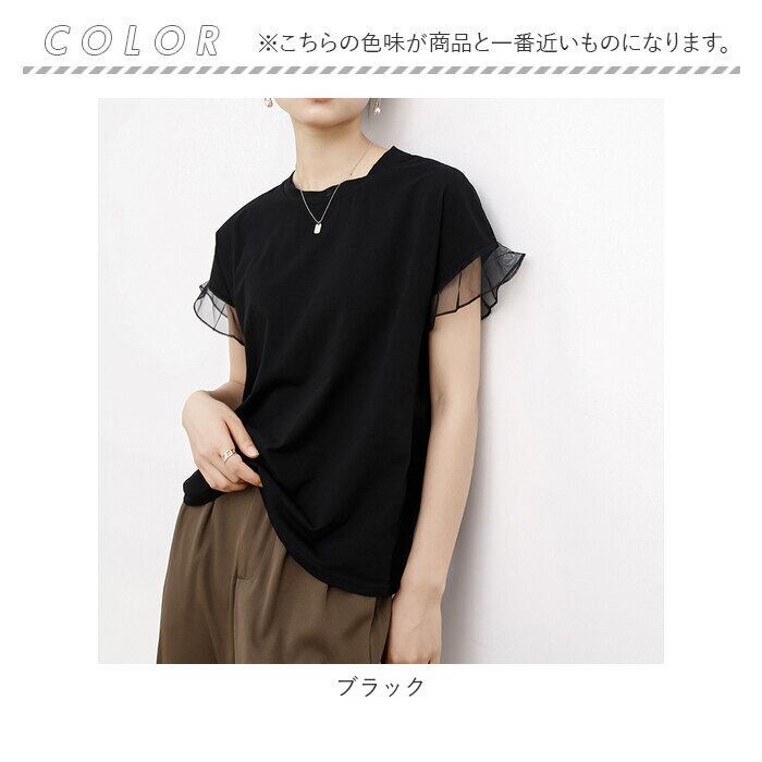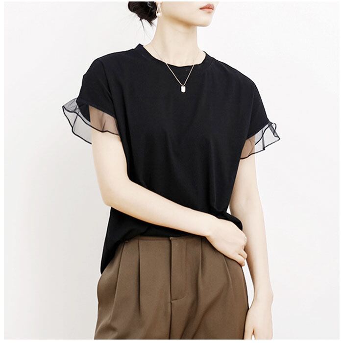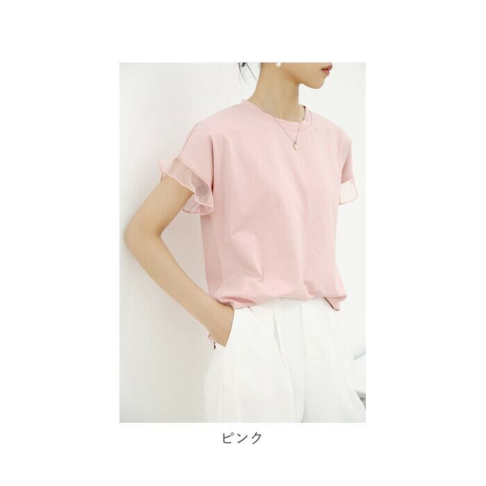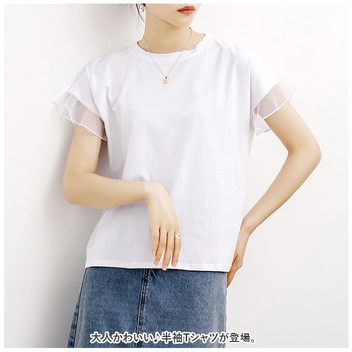 Tシャツ レディース 半袖 通販 クルーネック メッシュ フリル レース 綿 コットン カジュアル シンプル 柔らかい 春 夏 秋 トップス おしゃれ かわいい