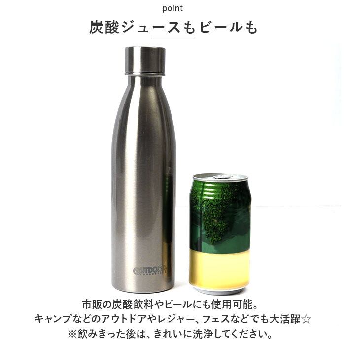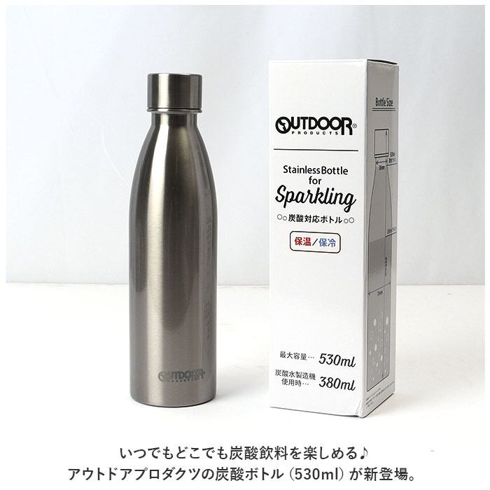 炭酸 OK 水筒 通販 炭酸水 入れ られる 炭酸ボトル 380ml 持ち歩き ボトル ステンレスボトル 530ml ソーダストリーム 対応 アウトドアプロダクツ OUTDOOR PRODUCTS シンプル 無地 保冷 保温 マグボトル 大人用水筒 キッチン用品