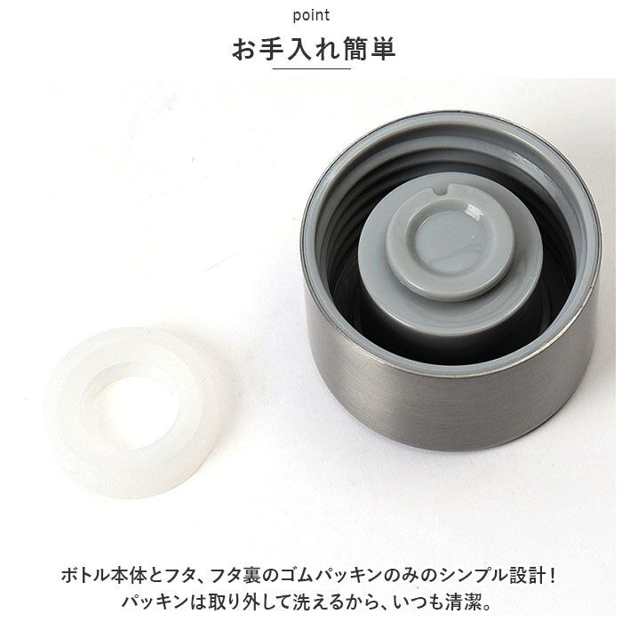 ・ボトル本体とフタ、フタ裏のゴムパッキンのみのシンプル設計!パッキンは取り外して洗えるから、いつも清潔。