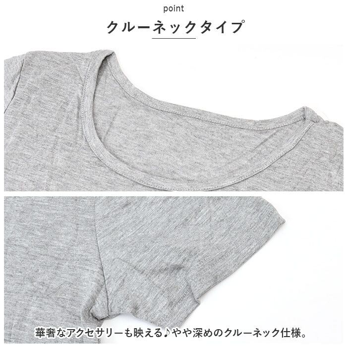 ・華奢なアクセサリーも映える♪やや深めのクルーネック仕様。