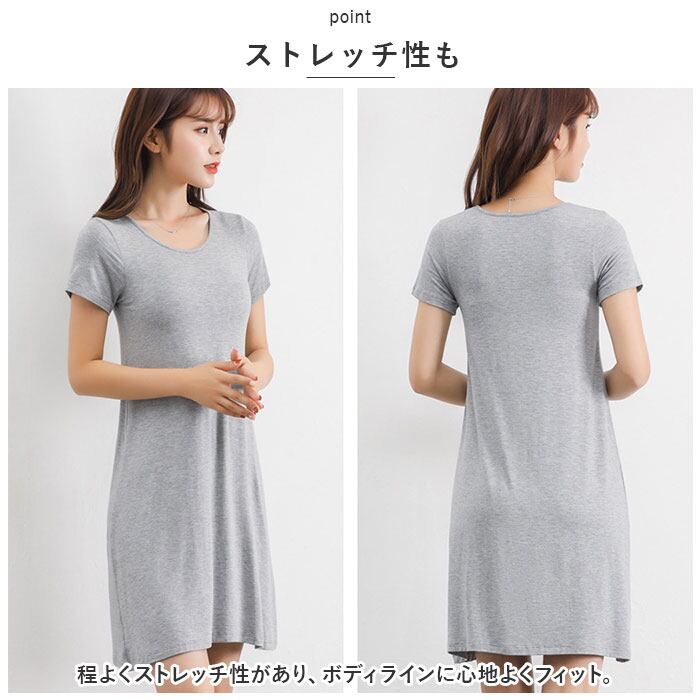 インナーワンピース ワンピース ルームウェア tシャツワンピース 通販 半袖 カットソー Tシャツ ロンT Tシャツワンピ 肌着 レディース Aライン ラウンドネック 大きいサイズ ゆったり シンプル カジュアル リラックス かわいい