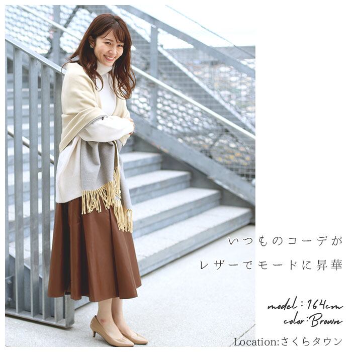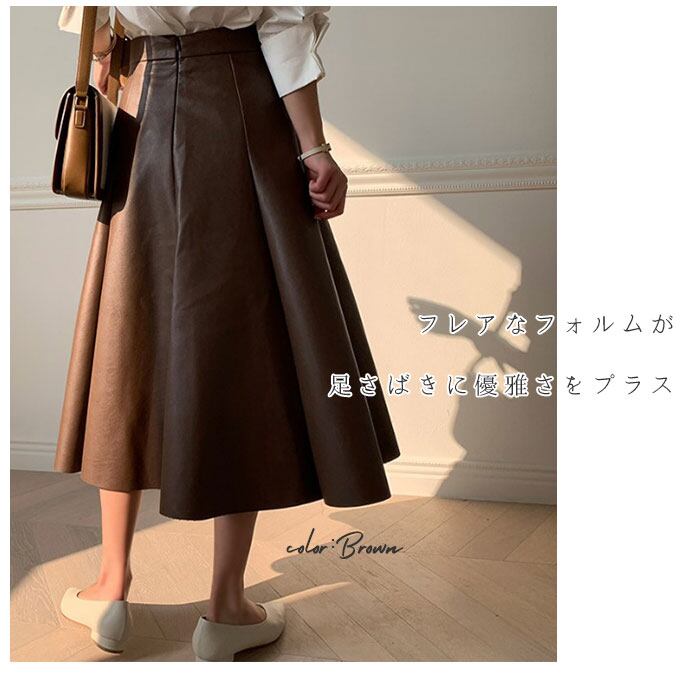 スカート 秋冬 ロング 通販 大きいサイズ オフィス フェイク レザースカート フレアスカート ロングスカート 合皮 スカート 通勤 マキシ丈 フレアスカート 30代 40代 ブラウン ブラック 黒 大人かわいい Aラインスカート ミモレ丈 ボトムス 膝下 膝した
