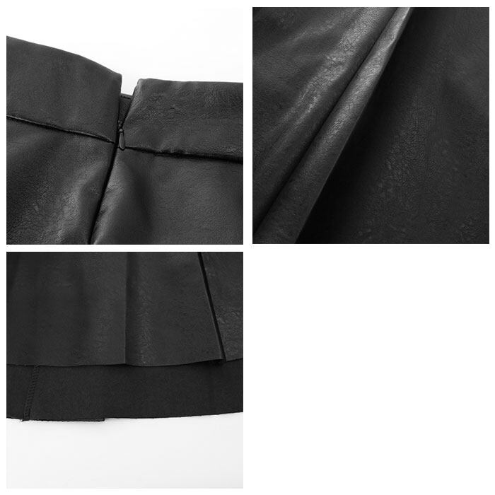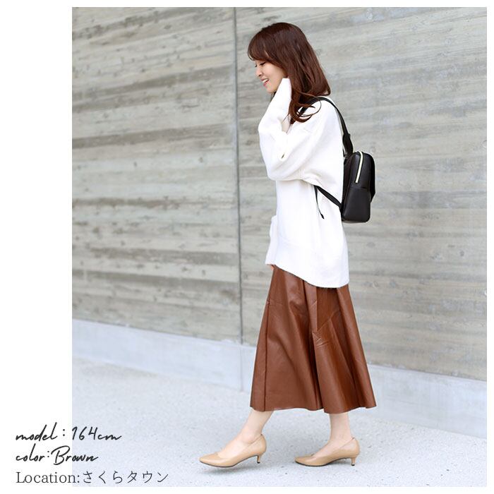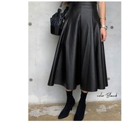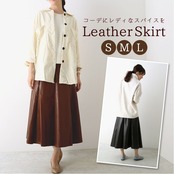 ・スタイリッシュな着こなしを演出する美シルエットの2色展開、シンプルフレアフェイクレザースカート。