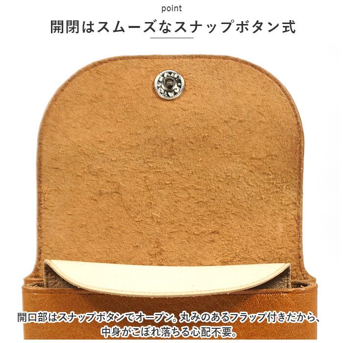 ・開口部はスナップボタンでオープン。丸みのあるフラップ付きだから、中身がこぼれ落ちる心配不要。