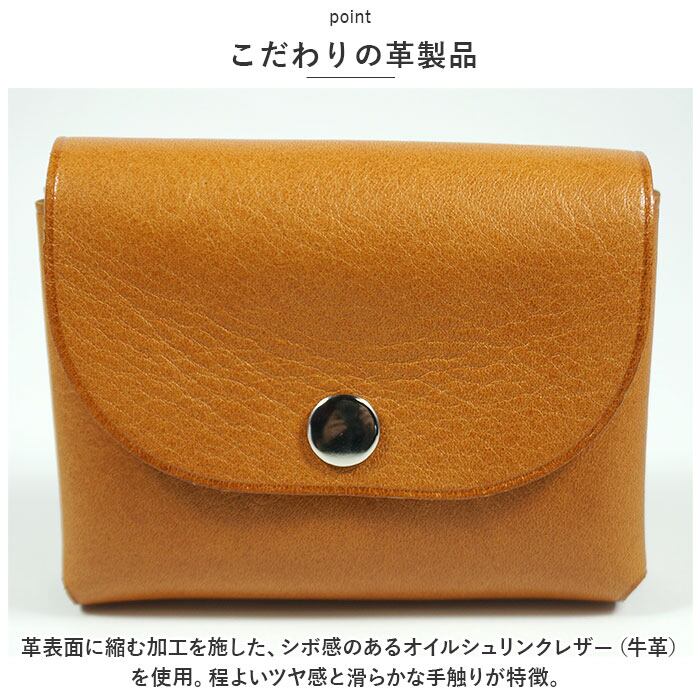 ・革表面に縮む加工を施した、シボ感のあるオイルシュリンクレザー(牛革)を使用。程よいツヤ感と滑らかな手触りが特徴。