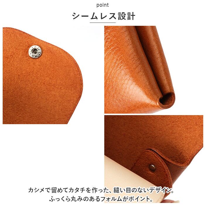 ・カシメで留めてカタチを作った、縫い目のないデザイン。ふっくら丸みのあるフォルムがポイント。