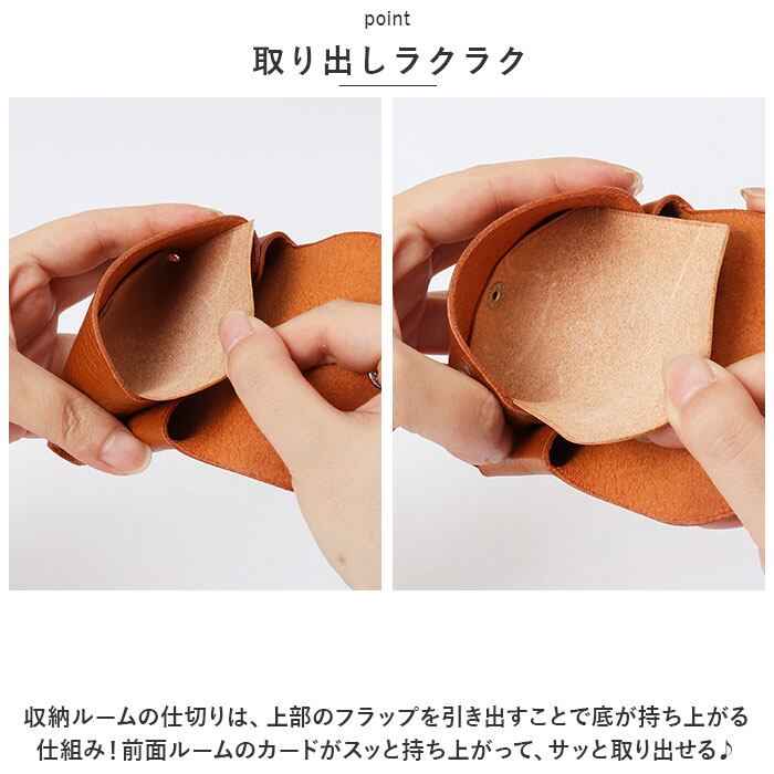 ・収納ルームの仕切りは、上部のフラップを引き出すことで底が持ち上がる仕組み!前面ルームのカードがスッと持ち上がって、サッと取り出せる♪