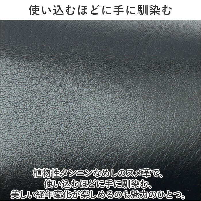 ・植物性タンニンなめしのヌメ革で、使い込むほどに手に馴染む、美しい経年変化が楽しめるのも魅力のひとつ。