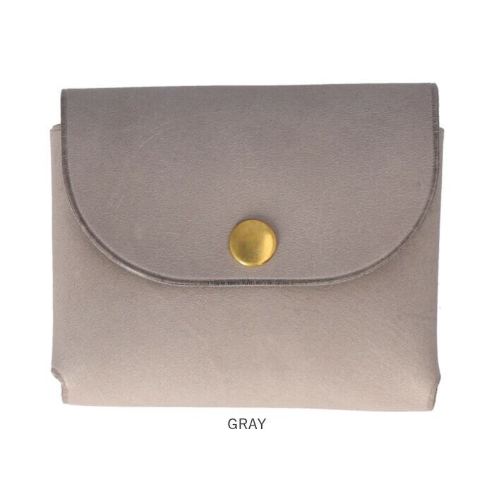 ・折りとカシメで留めてカタチを作った、縫い目のないデザイン。ころんと丸みのあるフォルムがポイント。
