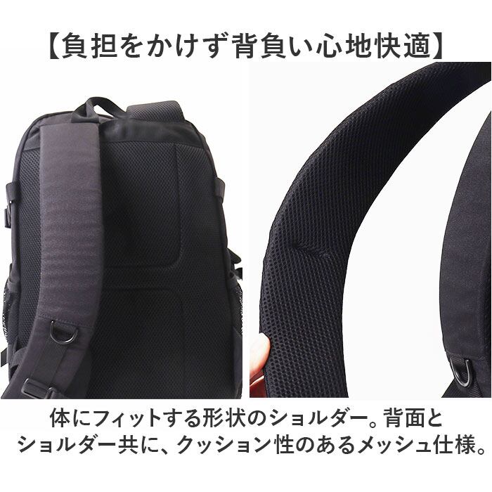 ・体にフィットする形状のショルダー。背面とショルダー共に、クッション性のあるメッシュ仕様。