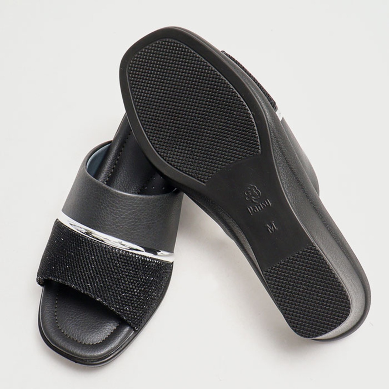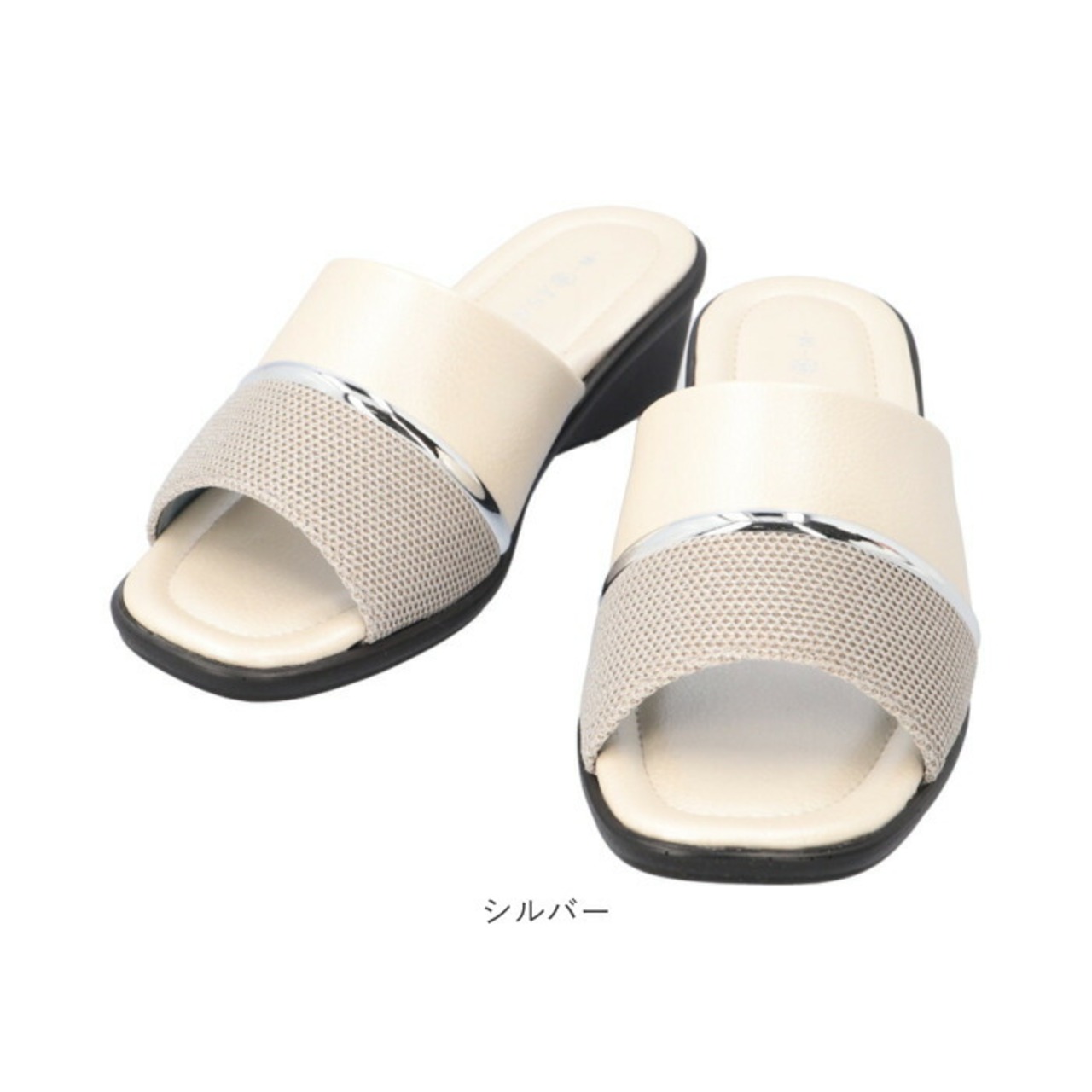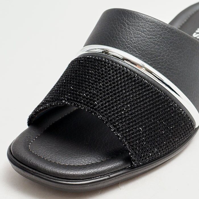 ・パール調の素材とラメ感のあるメッシュ素材を使い、シルバーラインがアクセント。落ち着きのあるおしゃれな足元を演出。