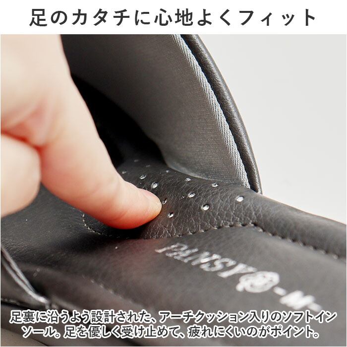 ・足裏に沿うよう設計された、アーチクッション入りのソフトインソール。足を優しく受け止めて、疲れにくいのがポイント。