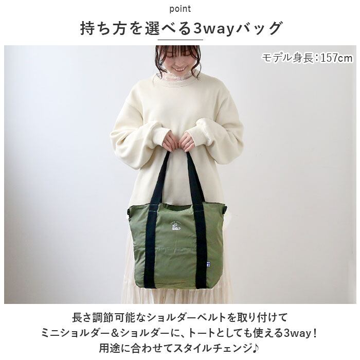 ・長さ調節可能なショルダーベルトを取り付けてミニショルダー&ショルダーに、トートとしても使える3way!用途に合わせてスタイルチェンジ♪