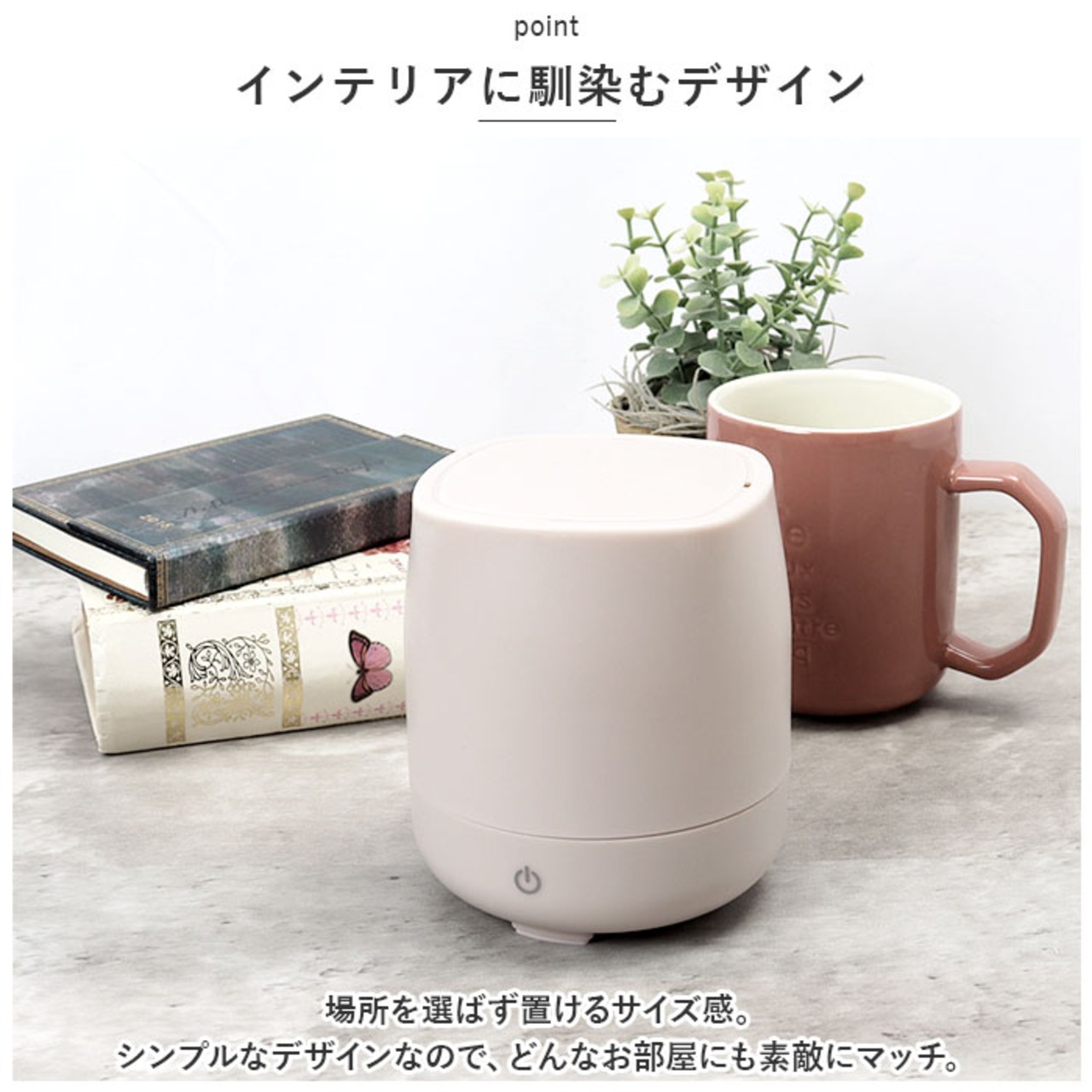 ・水100mlあたりに対し2~3滴のアロマオイルをタンクにIN。スイッチを入れるとお気に入りの香りがふわっと漂い、疲れた心もほっこり。