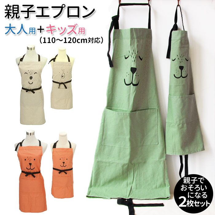 親子 お揃い エプロン 通販 ペア おしゃれ キッズ 女の子 男の子 レディース 親子ペア ナチュラル かわいい シンプル お手伝い 食育 キャラクター 動物 アニマル 顔 フェイス キッチンファブリック 配膳用品