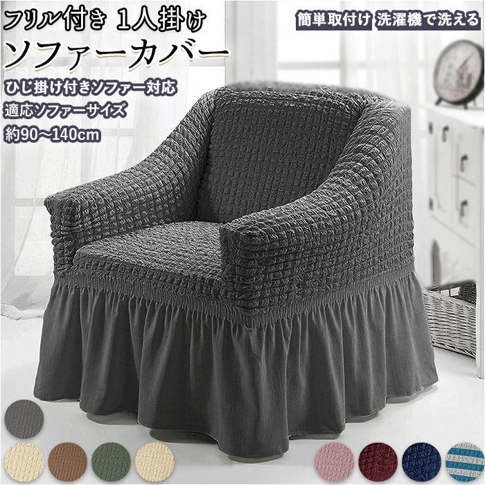 ソファーカバー 1人掛け ストレッチ 肘付き 通販 フリル ソファー カバー 伸びる 洗濯可 洗える 北欧 かけるだけ 伸縮性 フィットカバー かわいい シンプル 簡単取付 リビング
