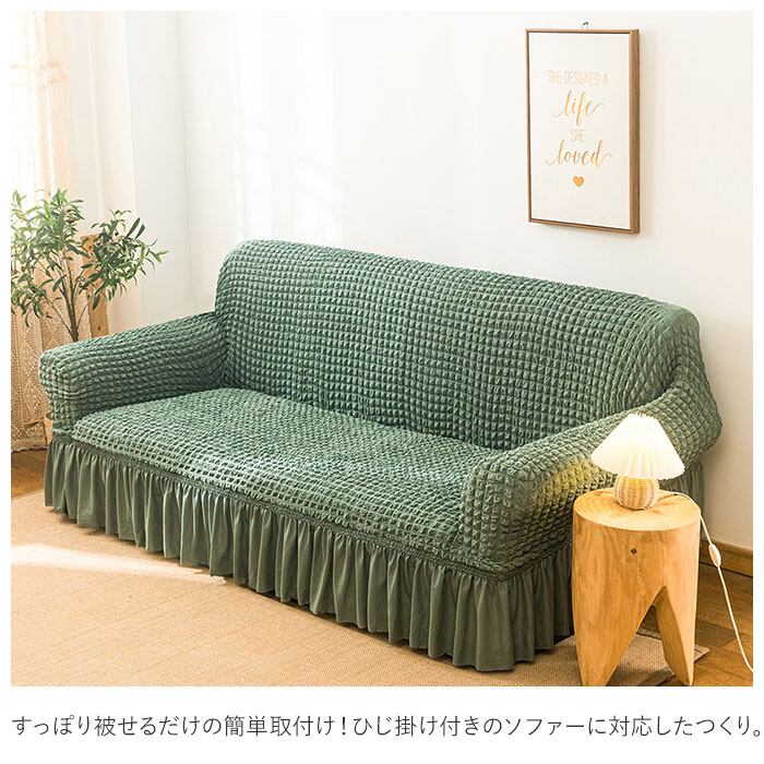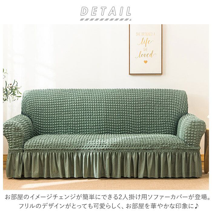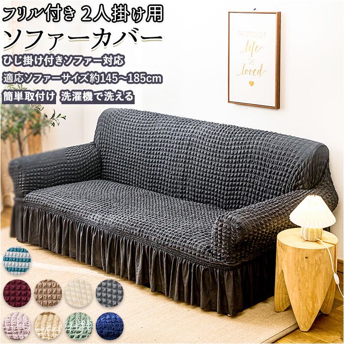 ソファーカバー 2人掛け ストレッチ 肘付き 通販 フリル ソファー カバー 伸びる 洗濯可 洗える 北欧 かけるだけ 伸縮性 フィットカバー かわいい シンプル 無地 フィット 伸縮 簡単取付 リビング オールシーズン 手触り