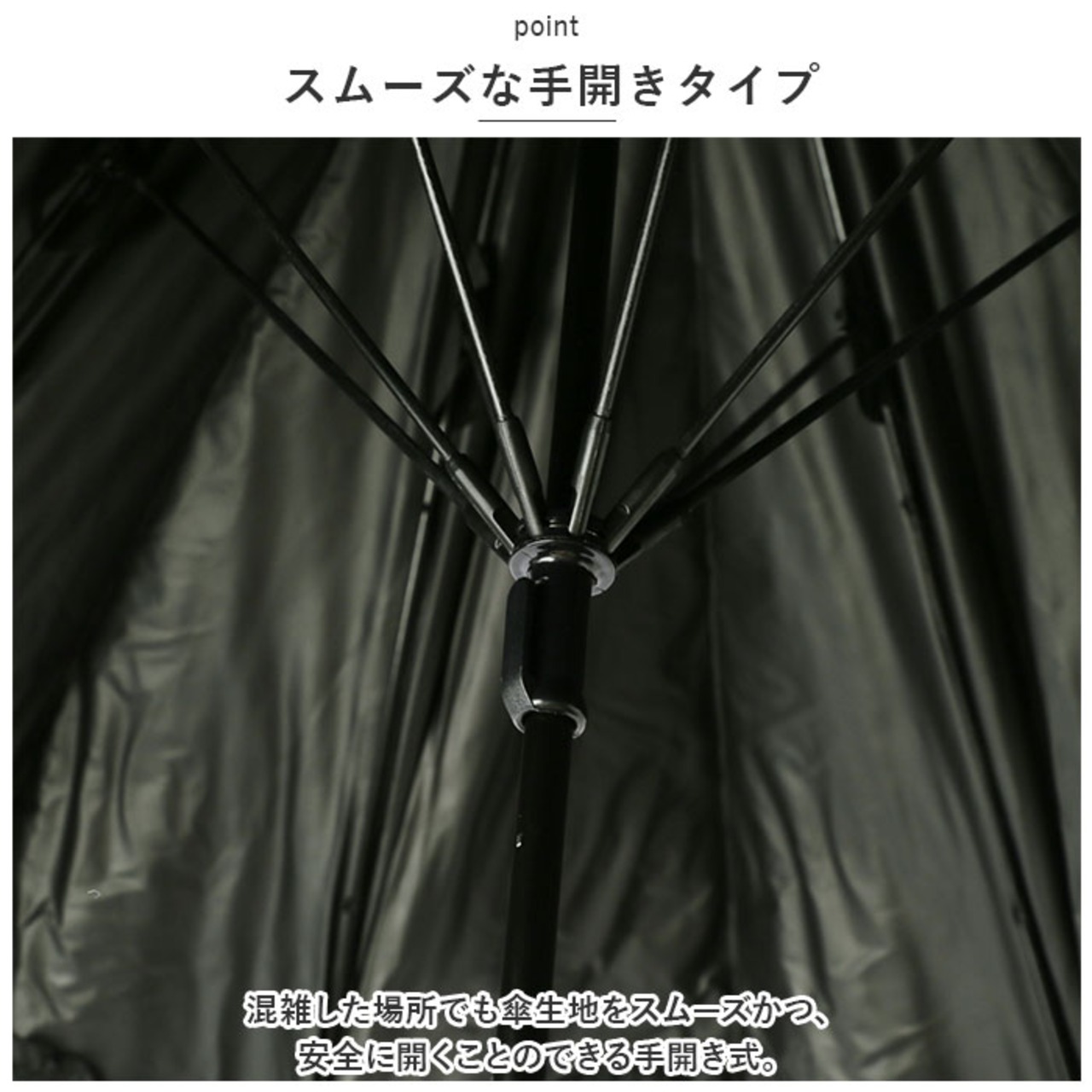 ・混雑した場所でも傘生地をスムーズかつ、安全に開くことのできる手開き式。