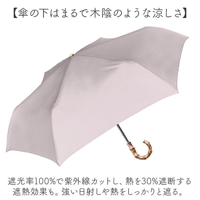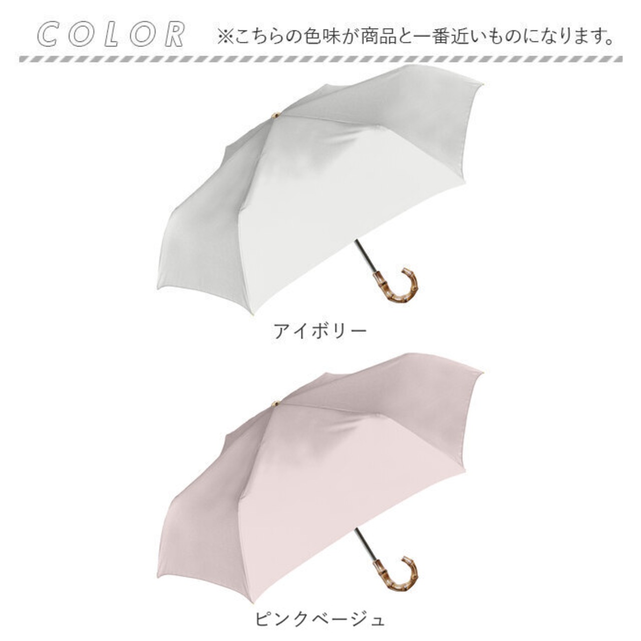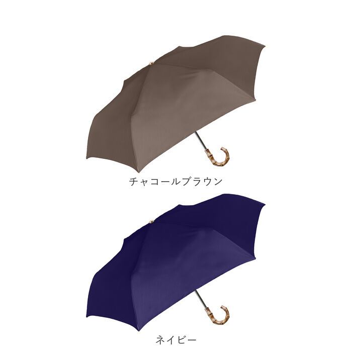 ・良質の天然の竹が柔らかい印象のハンドル。自然な風合いでオンもオフも使える折りたたみ傘。