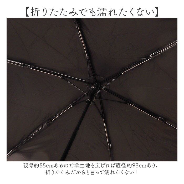 ・親骨約55cmあるので傘生地を広げれば直径約98cmあり。折りたたみだからと言って濡れたくない!