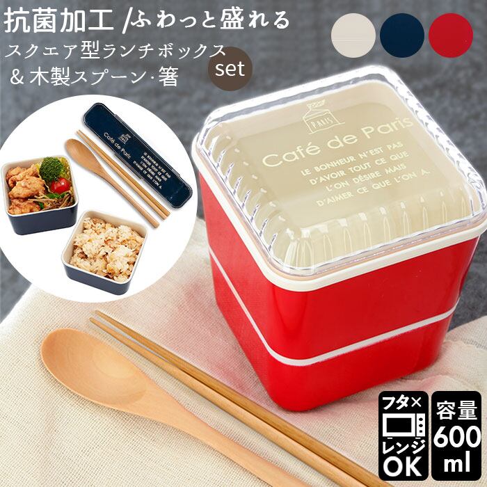 弁当箱 2段 箸セット 通販 お弁当箱 ランチボックス 2段 600ml おしゃれ かわいい 女性 女の子 中学生 高校生 小学生 レンジ対応 本体 食洗機対応 本体のみ 食洗機OK 入れ子 コンパクト 抗菌加工 抗菌塗 Cafe de Paris カフェドパリ 正和