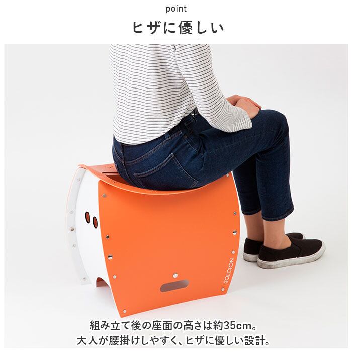 ・組み立て後の座面の高さは約35cm。大人が腰掛けしやすく、ヒザに優しい設計。