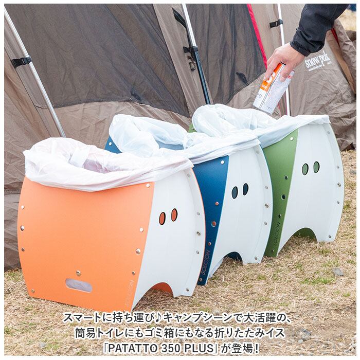 ・スマートに持ち運び♪キャンプシーンで大活躍の、簡易トイレにもゴミ箱にもなる折りたたみイス「PATATTO 350 PLUS」が登場!