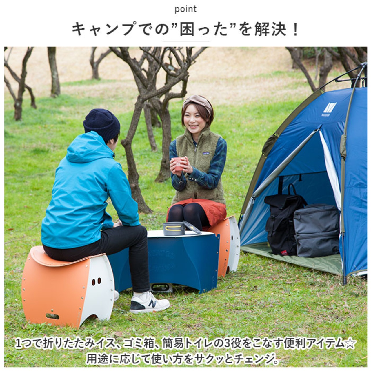 ・1つで折りたたみイス、ゴミ箱、簡易トイレの3役をこなす便利アイテム☆用途に応じて使い方をサクッとチェンジ。