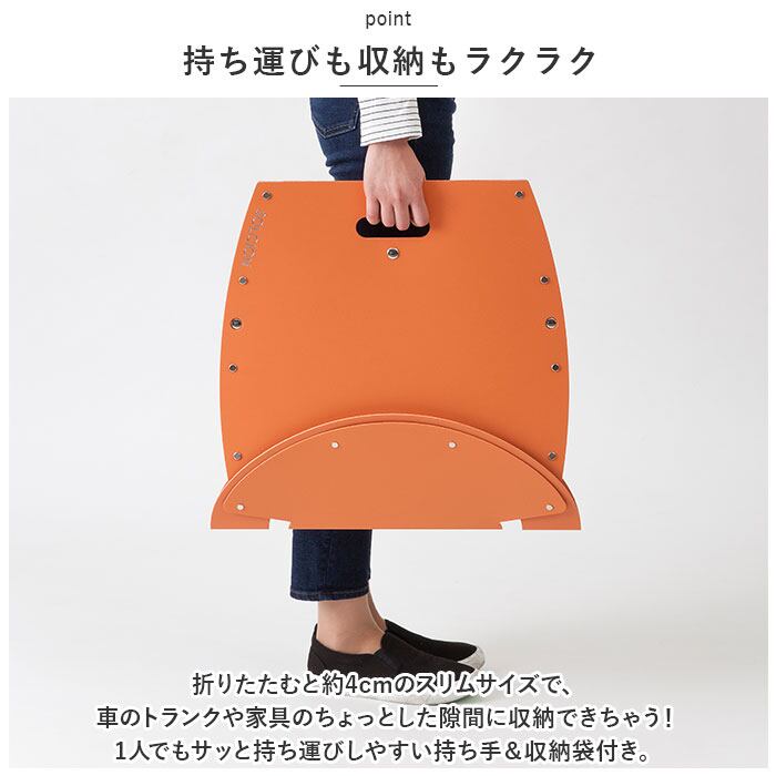 ・折りたたむと約4cmのスリムサイズで、車のトランクや家具のちょっとした隙間に収納できちゃう!1人でもサッと持ち運びしやすい持ち手&収納袋付き。