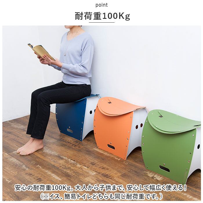 ・安心の耐荷重100Kg。大人から子供まで、安心して幅広く使える!(※イス、簡易トイレどちらも同じ耐荷重です。)