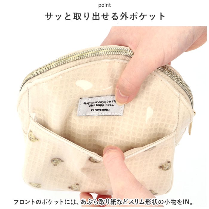 ・フロントのポケットには、あぶら取り紙などスリム形状の小物をIN。