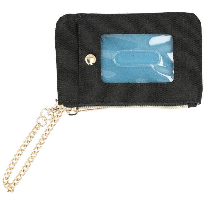 ・背面のポケットは、ICカードや社員証を入れておけるクリア窓仕様。スナップボタン式で、カードが飛び出すことなく安心◎