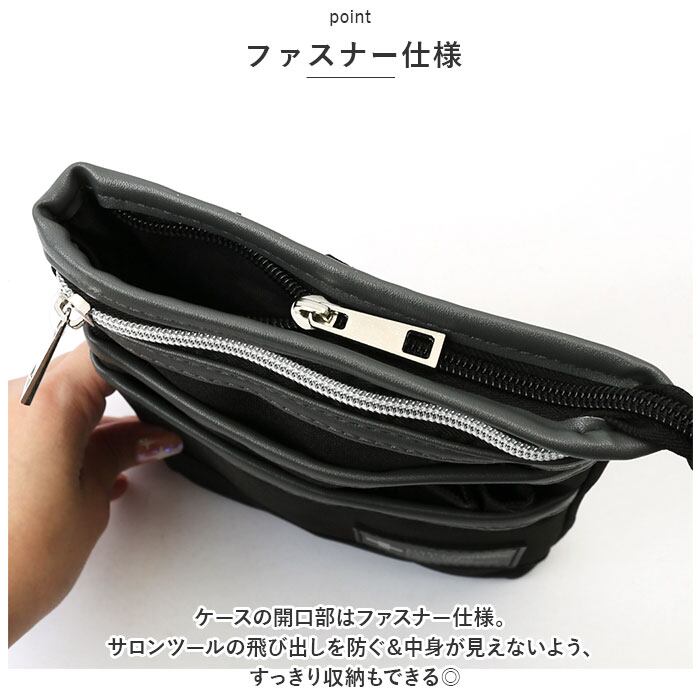 ・ケースの開口部はファスナー仕様。サロンツールの飛び出しを防ぐ&中身が見えないよう、すっきり収納もできる◎
