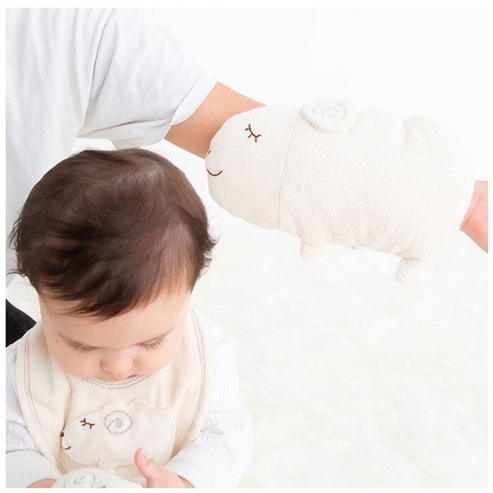 ・綿本来の色を生かした、染色していないオーガニックコットン100%生地を使用。農薬や化学肥料不使用でお肌に優しく、赤ちゃんが触れても安心の日本製品。(※中綿はポリエステル素材です。)