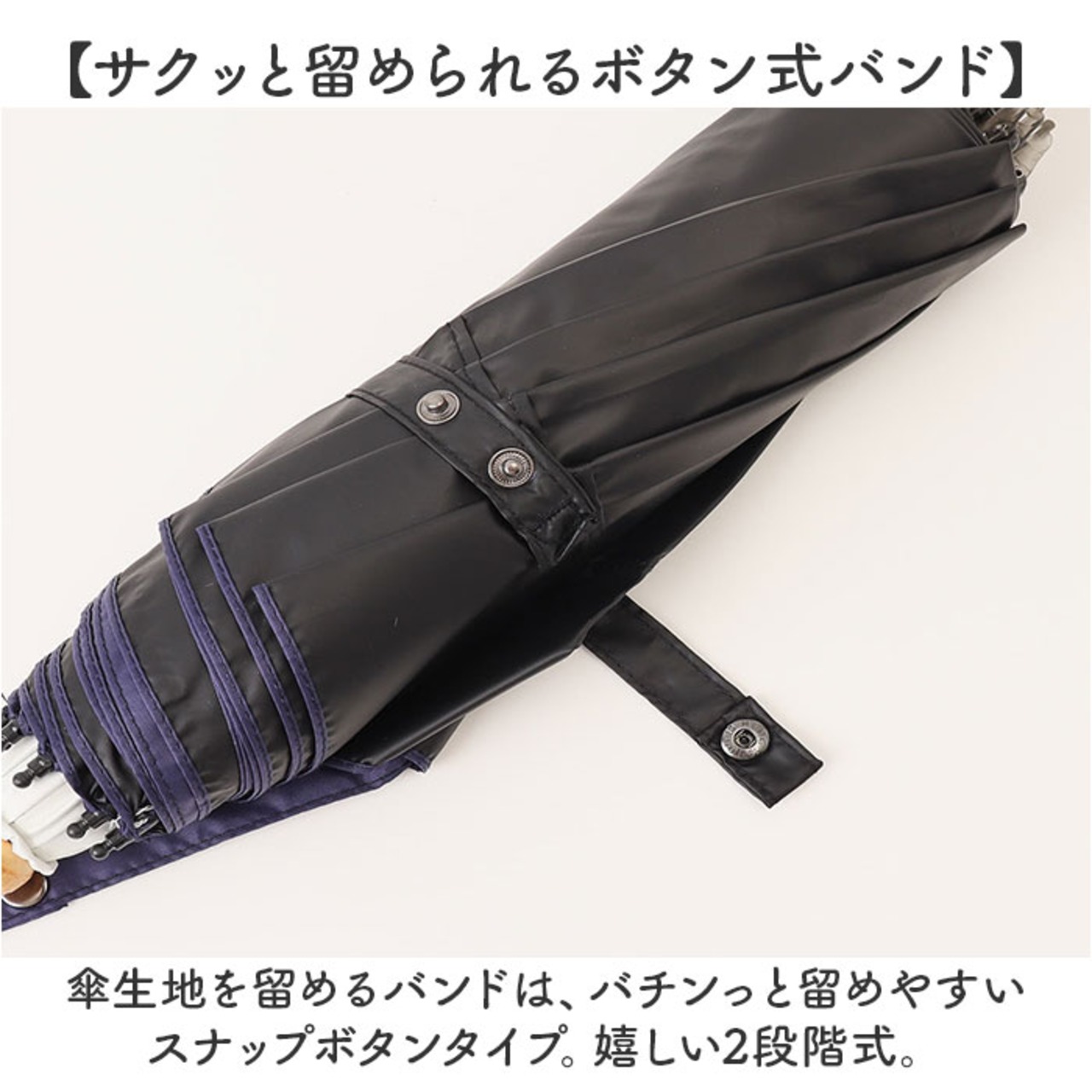 ・傘生地を留めるバンドは、バチンっと留めやすいスナップボタンタイプ。嬉しい2段階式。
