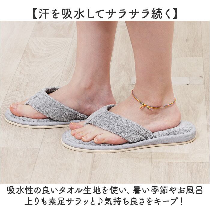 ・吸水性の良いタオル生地を使い、暑い季節やお風呂上りも素足サラッと♪気持ち良さをキープ!