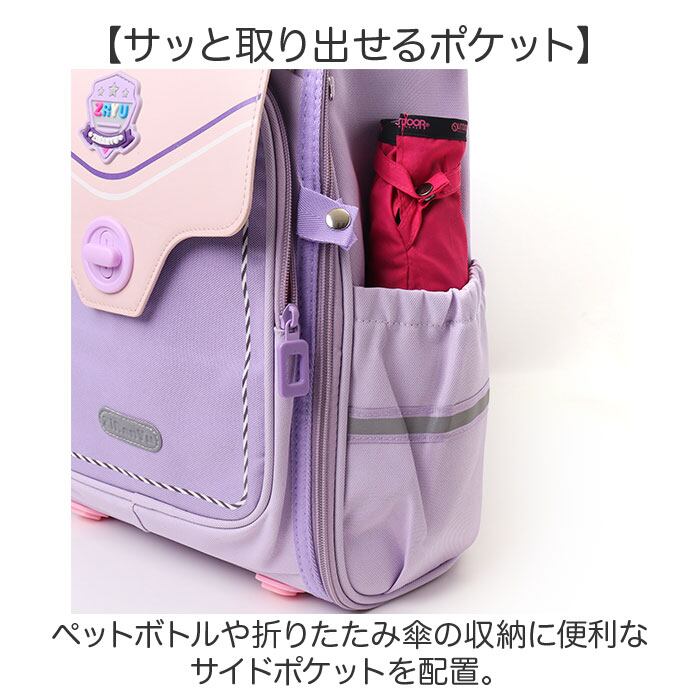 ・ペットボトルや折りたたみ傘の収納に便利なサイドポケットを配置。