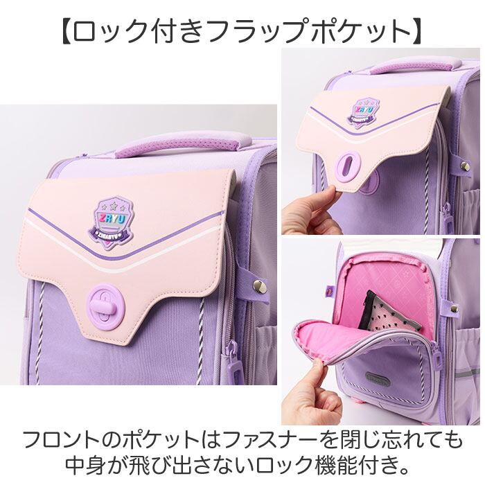 ・フロントのポケットはファスナーを閉じ忘れても中身が飛び出さないロック機能付き。