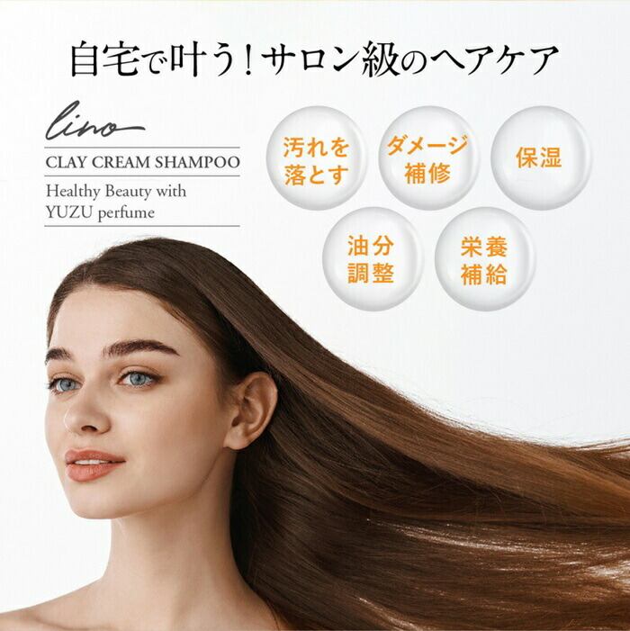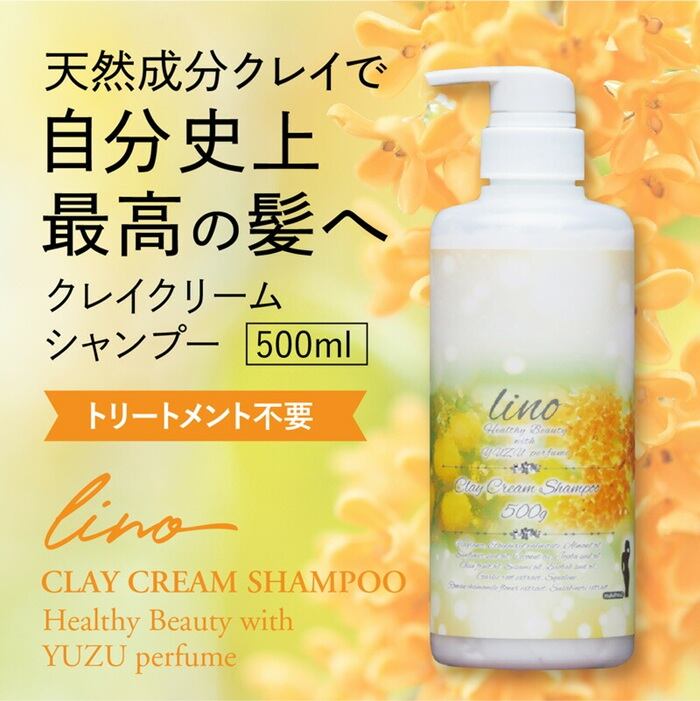 トリートメント不要 シャンプー 通販 日本製 クレイクリームシャンプー クレイシャンプー クリームシャンプー 泥シャンプー 柚子の香り 金木犀 オーガニックオイル ノンシリコン オールインワン 時短 lino リノ ヘアケア コスメ 美容