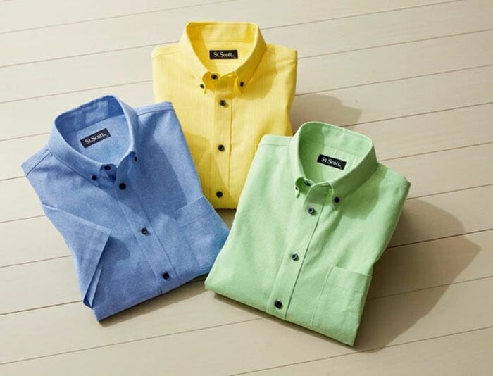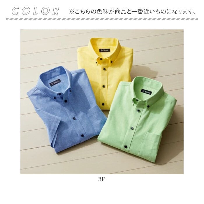 ・鮮やかなカラーが印象的なシャツは、衿元が決まるボタンダウン仕様。