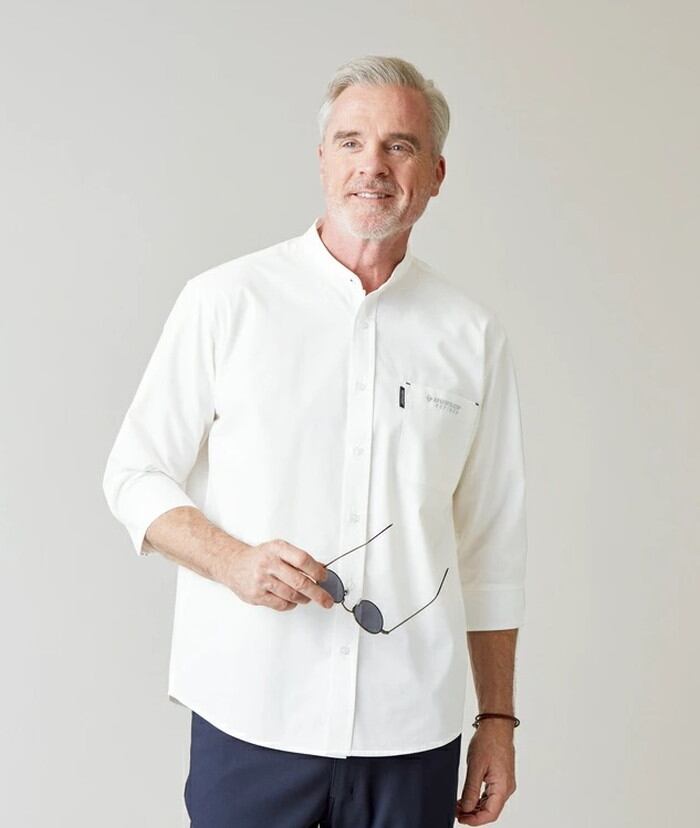 【ダンロップ】リネンライクバンドカラー7分袖シャツ