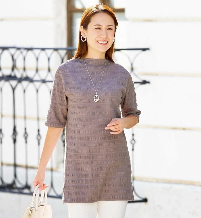 ・ふんわり上品な表情が人気のふくれ素材チュニック。