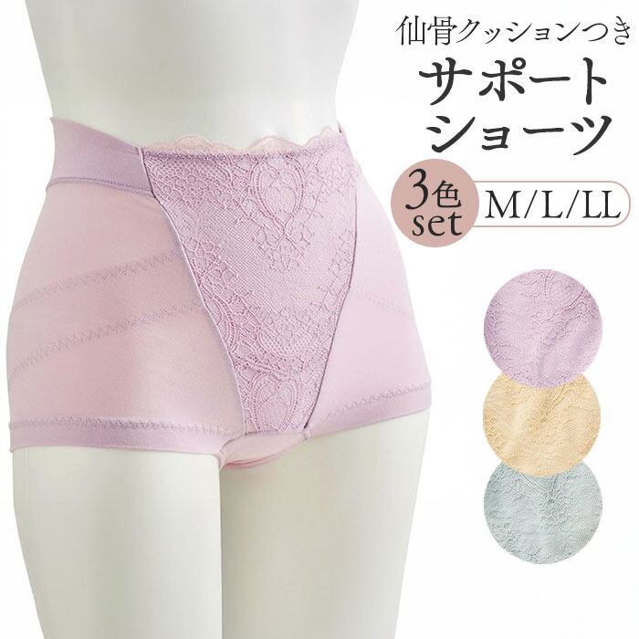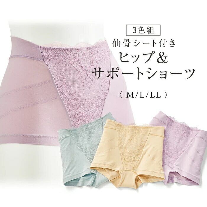 仙骨シート付きヒップ&サポートショーツ3色組