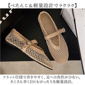 ・フラット仕様で歩きやすく、足への負担が少ない。たくさん歩く日にもぴったりな軽量設計。