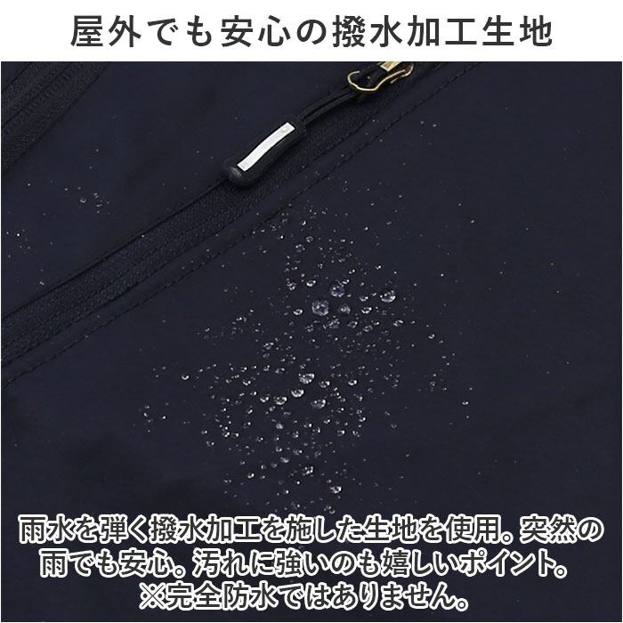 ・雨水を弾く撥水加工を施した生地を使用。突然の雨でも安心。汚れに強いのも嬉しいポイント。