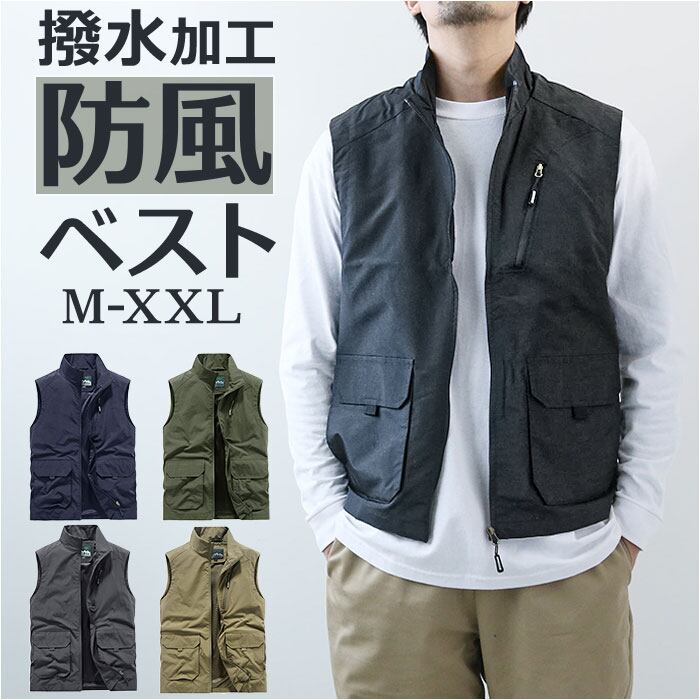 ・安心の撥水加工!アウトドアやフィッシングなどにぴったりの高機能性◎防風ベストが登場。