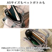・内側はA5サイズやペットボトル、長財布などが横向きにすっぽり。程よくマチを設けており、コスメポーチなどもIN。