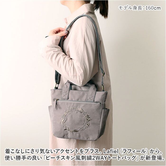 ・着こなしにさり気ないアクセントをプラス。Lafiel(ラフィール)から、使い勝手の良い「ピーチスキン風刺繍2WAYトートバッグ」が新登場。