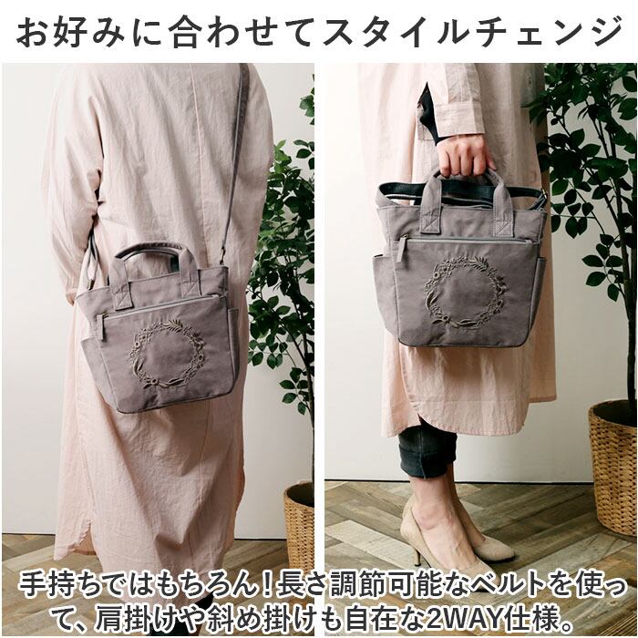 ラフィール ピーチスキン風刺繍 2WAYトートバッグ